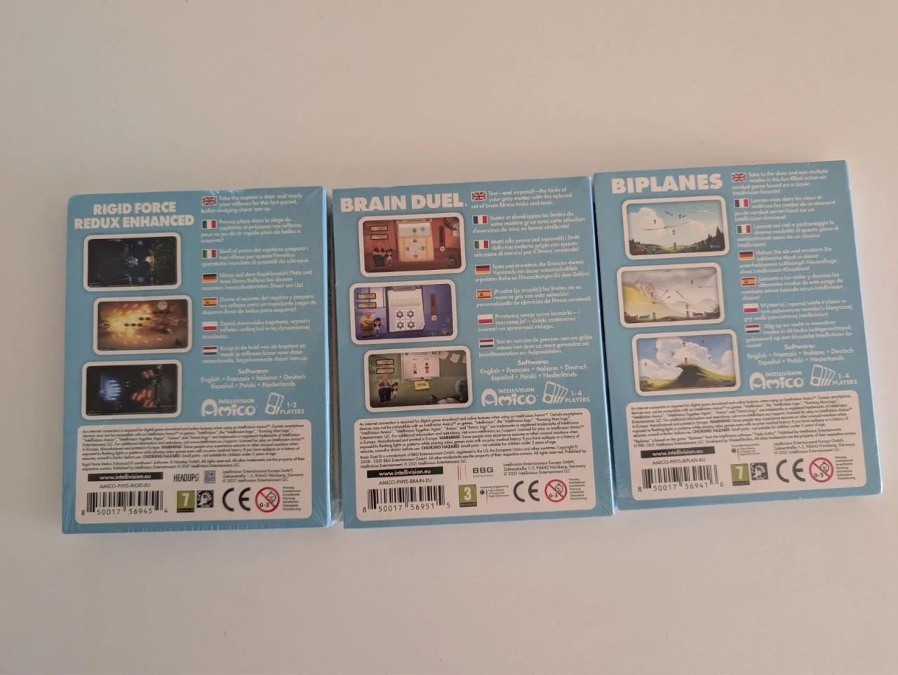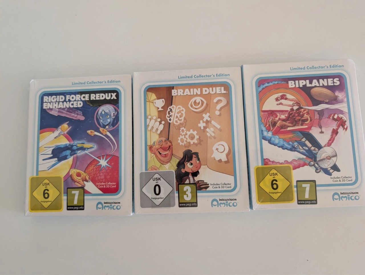 «Уникальный раритет: работающая, подлинная консоль Intellivision Amico с двумя контроллерами, блоком питания и лимитированными запечатанными играми Biplanes, Brain Duel и Rigid Force Redux Enhanced.