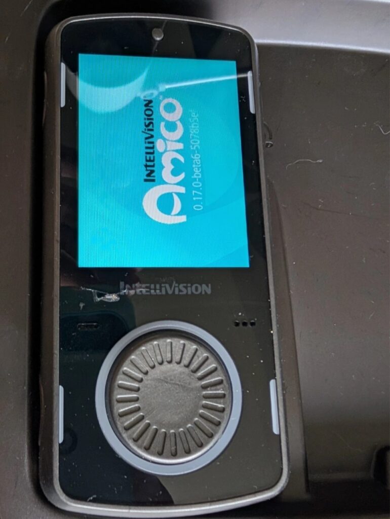 Консоль содержит рабочую RFID-карту (позволяет запустить специальный веб-сайт на смартфоне), монету и 3D-лентикулярную карту. При включении консоли на ней загорается кнопка „Бегущий человек“, а на экране (который можно подключить с помощью стандартного HDMI-кабеля) появляется этот самый „Бегущий человек“ — классический логотип Intellivision. Примерно через двадцать секунд человек начинает «идти», а затем появляется эффектная анимация логотипа Amico. Вместе